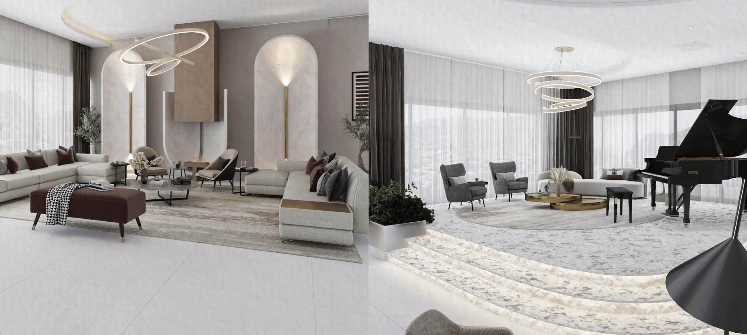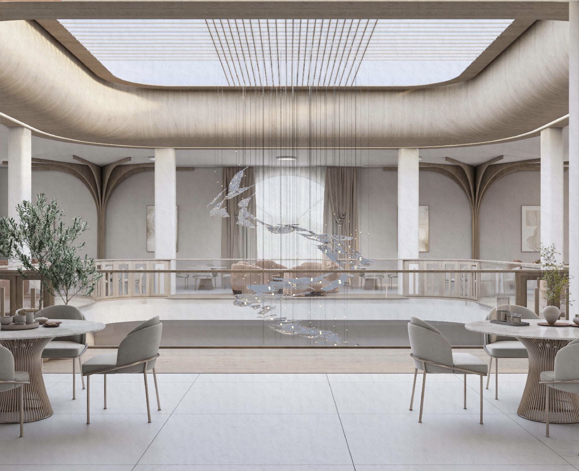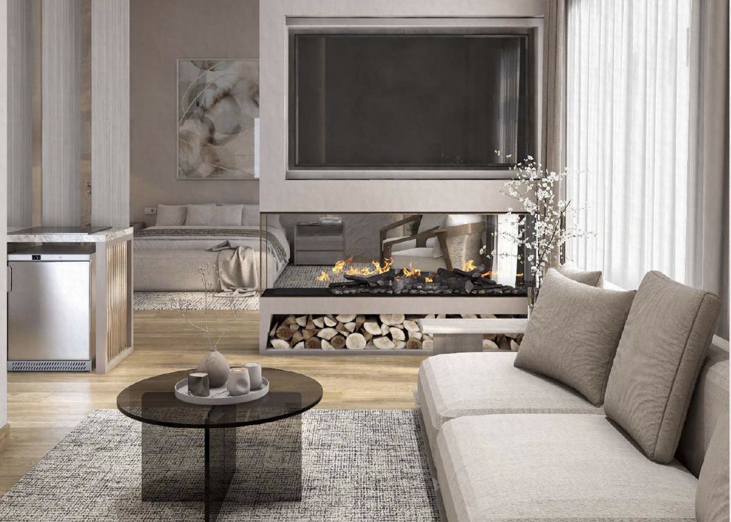 يعتمد أسلوب الحد الأدنى الدافئ، ويستخدم ألوانًا محايدة، وأثاث بأشكال منحنية ناعمة، وخامات راقية، ويستفيد من الإضاءة الطبيعية لتعزيز الشعور بالراحة والانفتاح