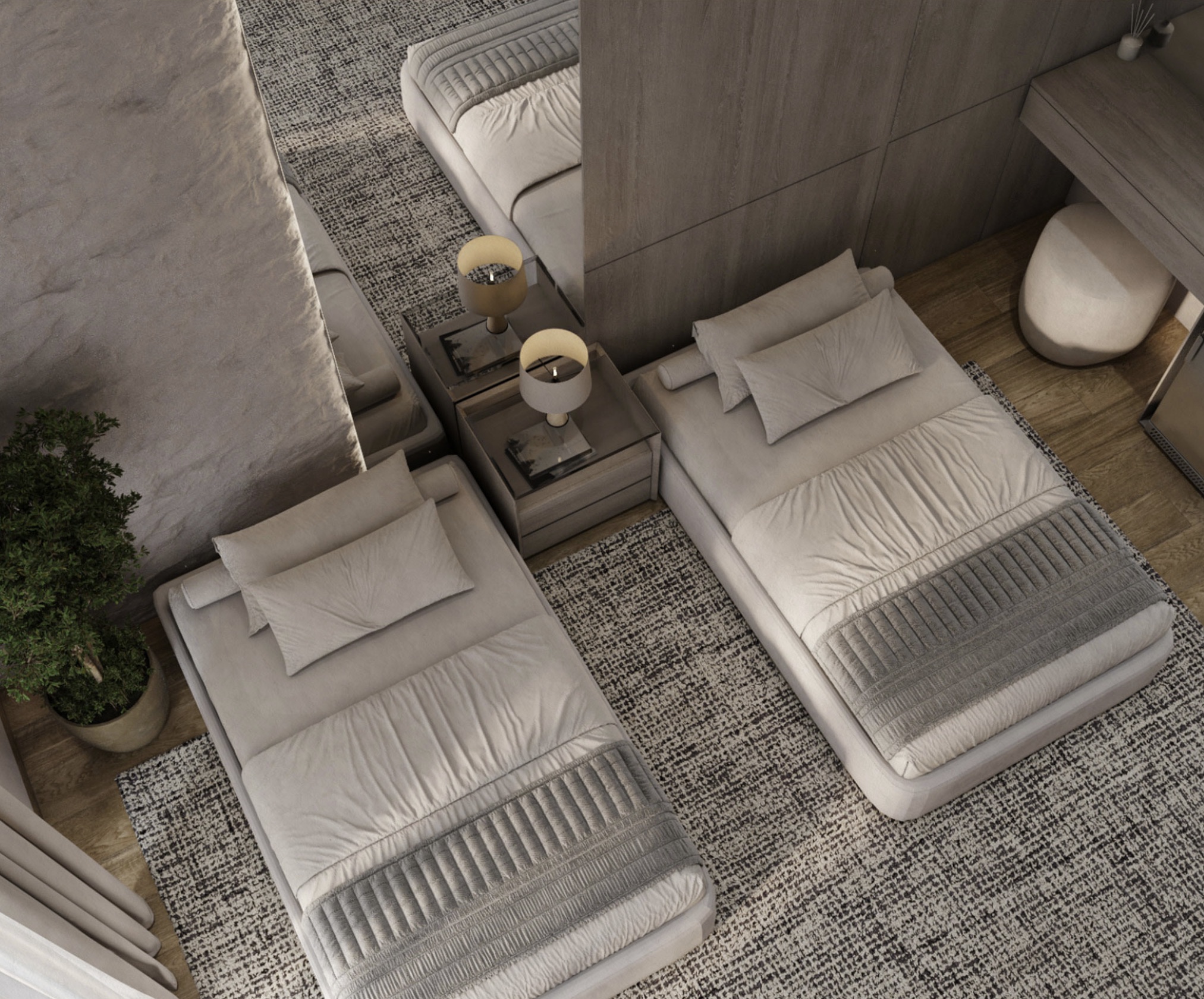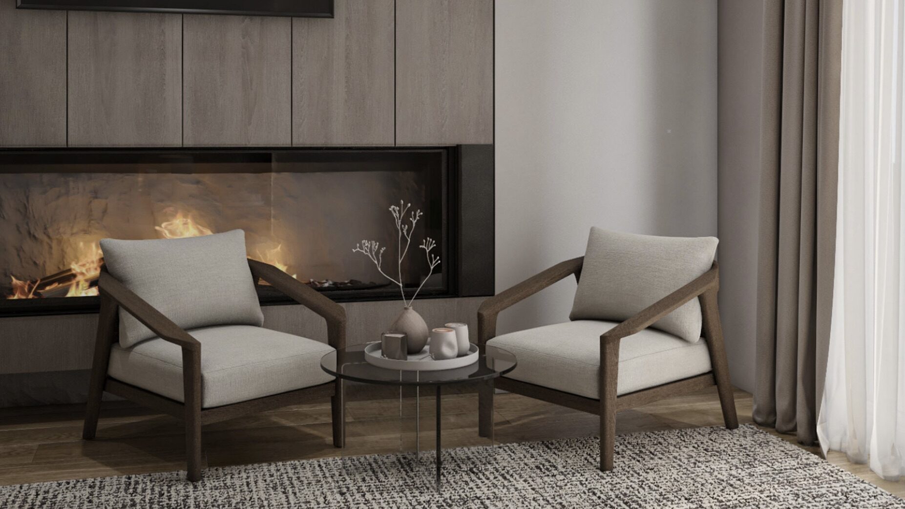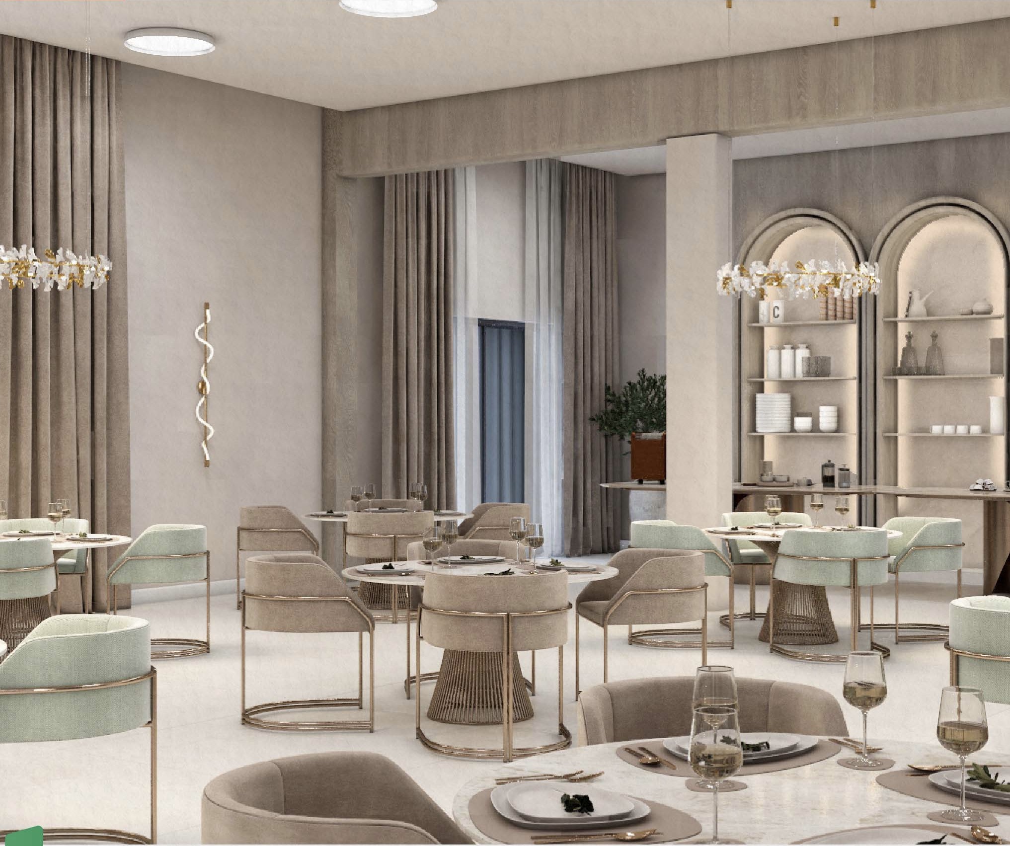 يعتمد أسلوب الحد الأدنى الدافئ، ويستخدم ألوانًا محايدة، وأثاث بأشكال منحنية ناعمة، وخامات راقية، ويستفيد من الإضاءة الطبيعية لتعزيز الشعور بالراحة والانفتاح